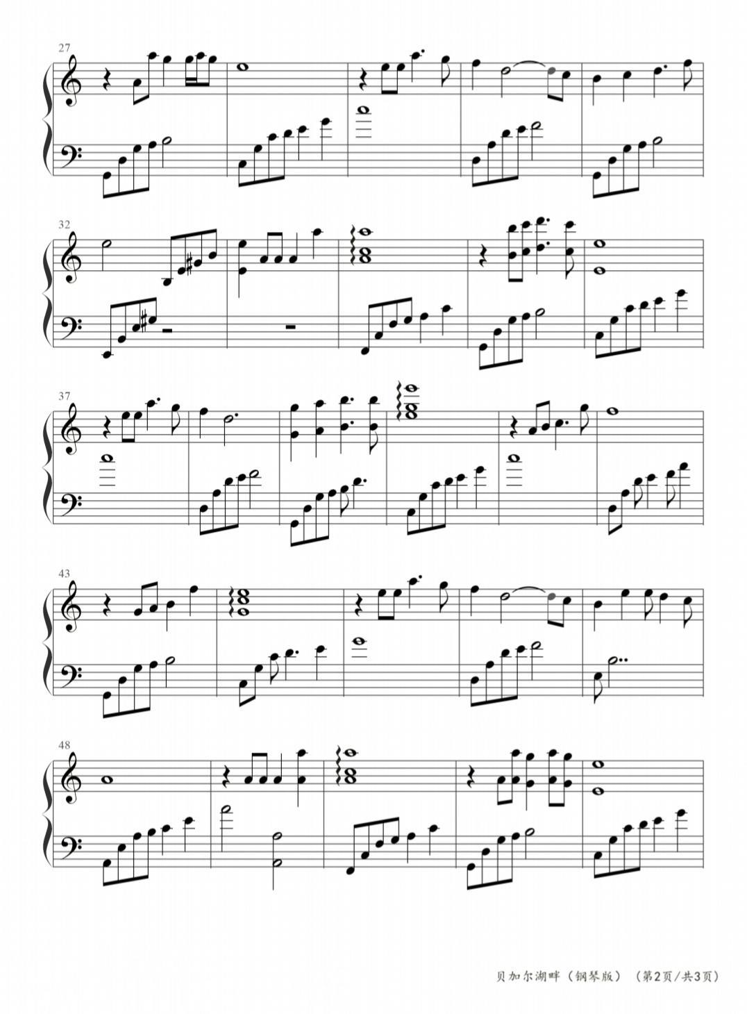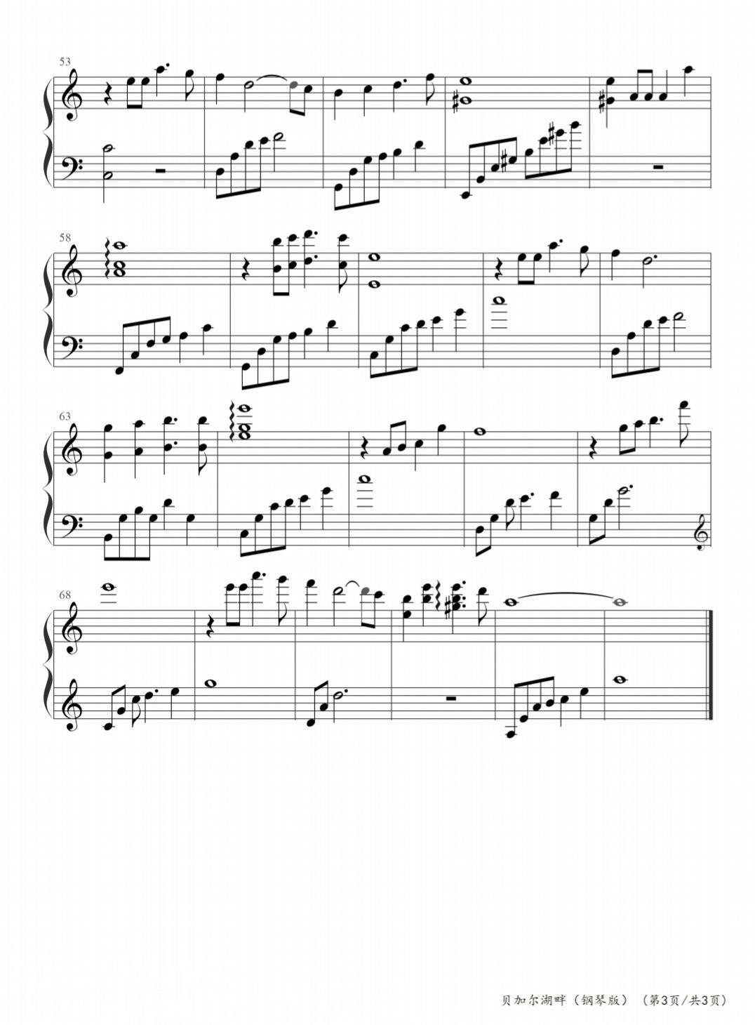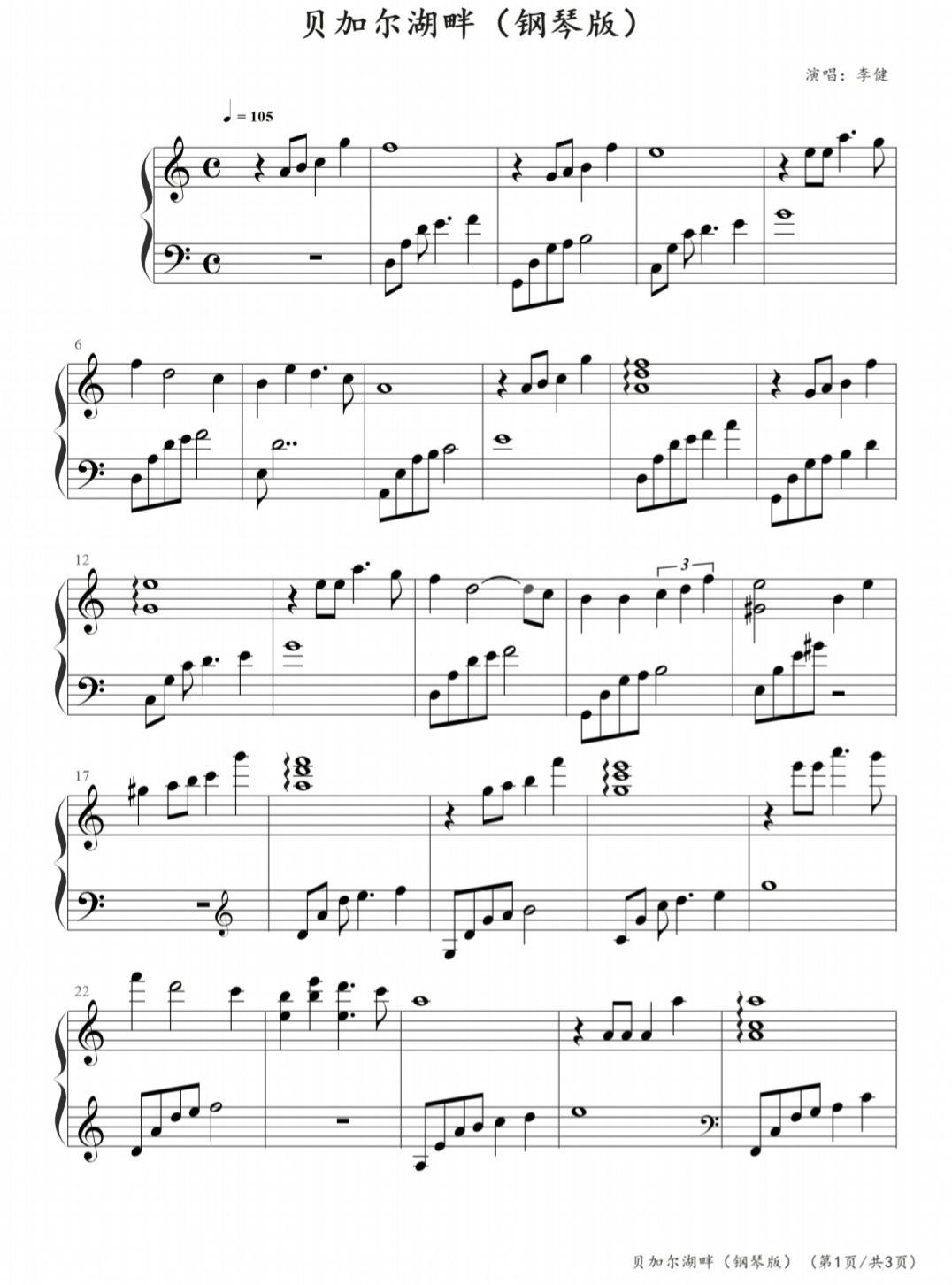 贝加尔湖畔,钢琴谱,李健,曲谱分享
