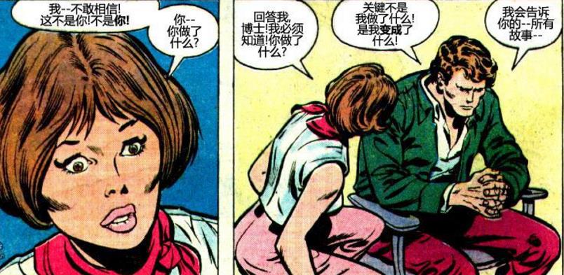 班纳博士一五一十的将他被伽马射线变成了一个绿皮怪兽的事情将给了他的表妹听。
