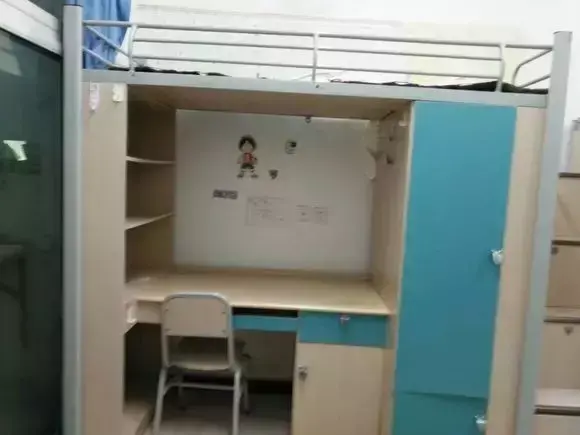 川美大学城校区多为四人间上床下桌,(六号楼比较特殊,三人间较多,也有两人间,平地床和桌子),听说楼层转角处的四人间比其他四人间大出一倍,在里面放机麻都可以放几桌~