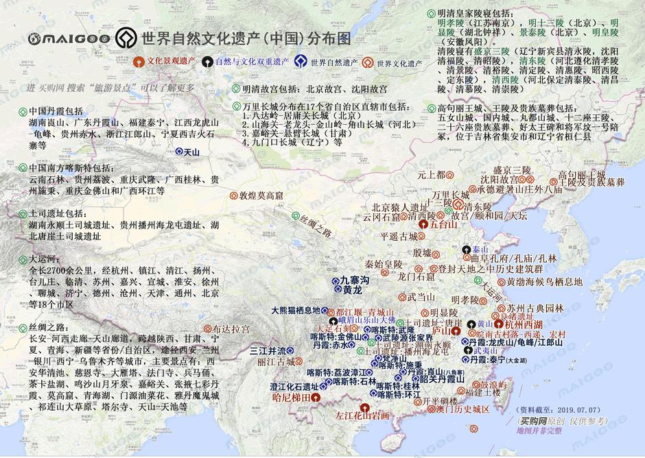 我国世界遗产分布图