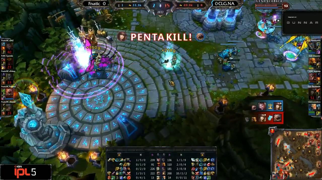尽管队伍的成绩不理想,但2012年却也是他声名鹊起的一年。在年底的IPL5上,他在短短的两天时间里面对三支不同队伍拿下了3个“五杀”。操作细腻、对线扎实、敢打敢拼的他一跃成为北美人气最高的ADC之一。