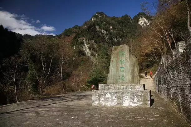 文县,邓艾偷渡阴平凿山修筑的古栈道犹在,三国古战场遗址未改。它是阴平古道的起点。出文县,走刘家坪(邓家坝),向东走到柏元村,沿石磨河向上,经过苜蓿坝到达摩天岭(南天门)。
