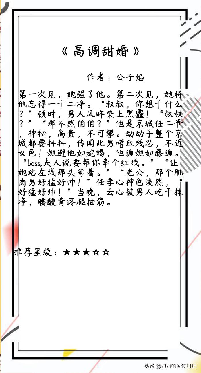 暖心盘点!10本超甜宠的高糖言情文,安知晓和叶非夜的文必须上榜