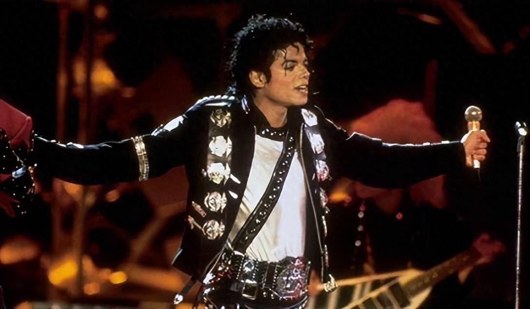 迈克尔杰克逊在舞台上大放异彩,全场的聚光灯都照在他身上,台下的粉丝大声地呼喊他的名字。