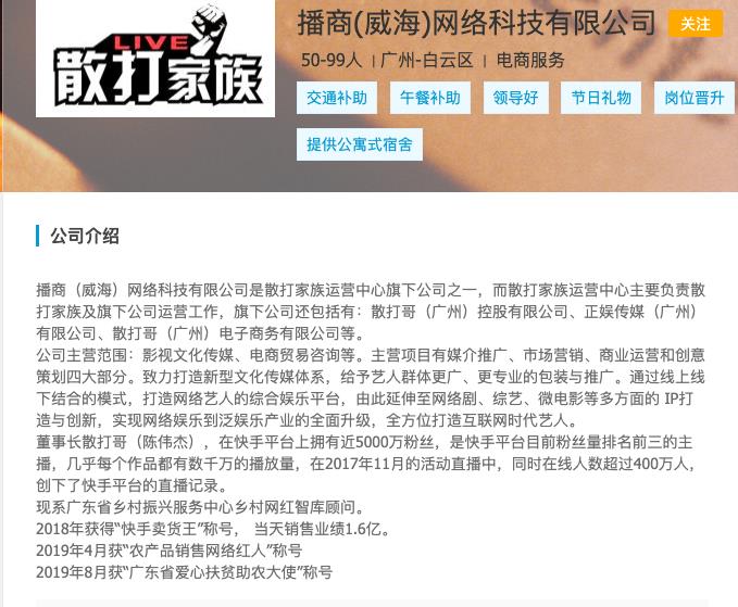但就是这份鸡血满满、让人上头的对赌合同,却被眼尖的网友发现,上面的甲方公司在某招聘网站的简介赫然写道:"是散打家族运营中心旗下公司之一"。
