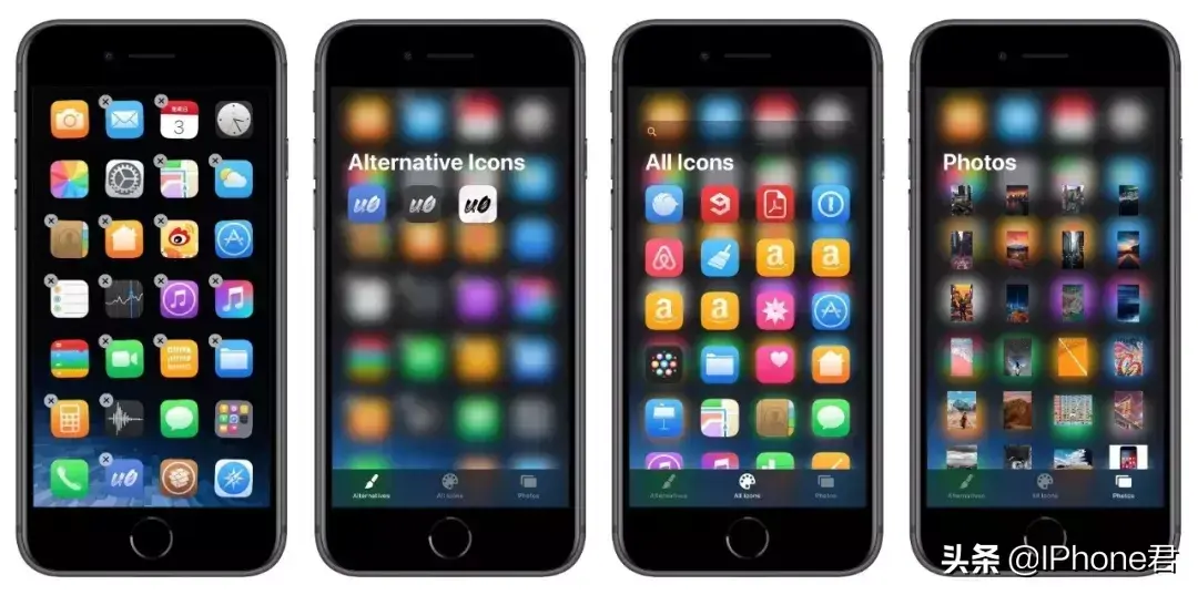 如果对图标不满意,还可以通过长按图标直至抖动状态,双击需要更换图标的 APP,就会跳出其它图标选择方案,也可使用相册图片作为图标: