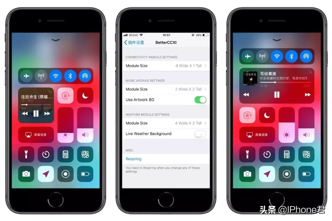 可自定义控制中心行列排布,还可以使音乐控件显示专辑封面