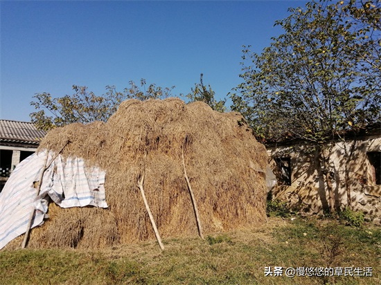 稻草堆,这是牛一个冬天的粮食,曾经非常熟悉的场景,如今很少见。