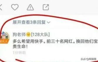凉山火灾牺牲了三十名英雄,各大网红都发作品默哀致敬,不知何时评论区出现这样一段文字节奏:用快手前三十网红的生命换回这三十位英雄该多好!狗老师发致敬英雄作品后,自己又跑去下方评论区留言复制这段话:多么希望用快手前三十名网红换回他们宝贵生命。狗老师此举扎了各位大网红的心,做的事没经过大脑,这种话怎么能说呢,有个性是好的啊,但个性过头了难免给自己惹麻烦。
