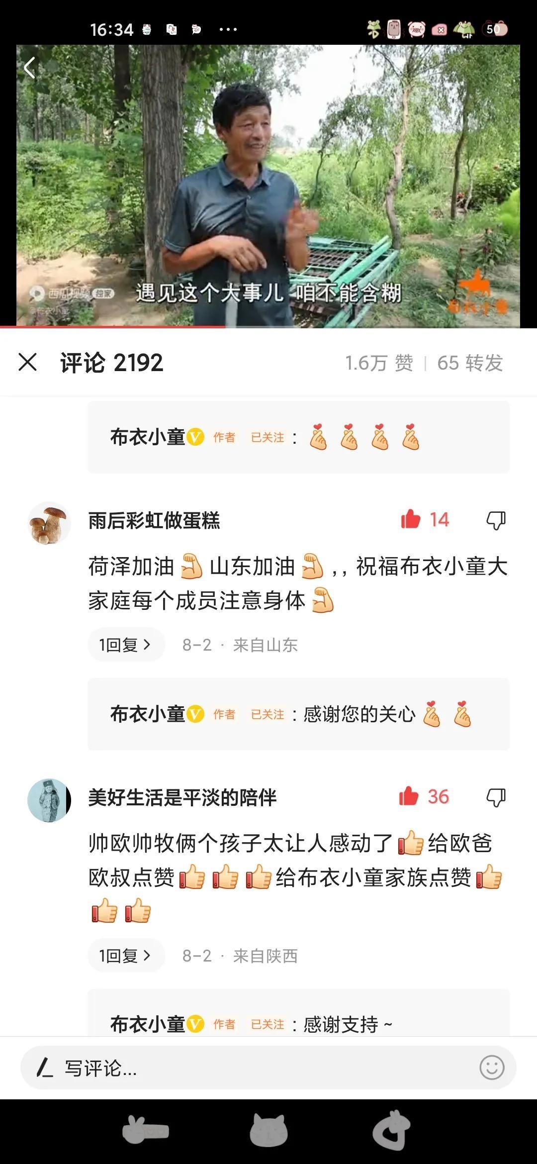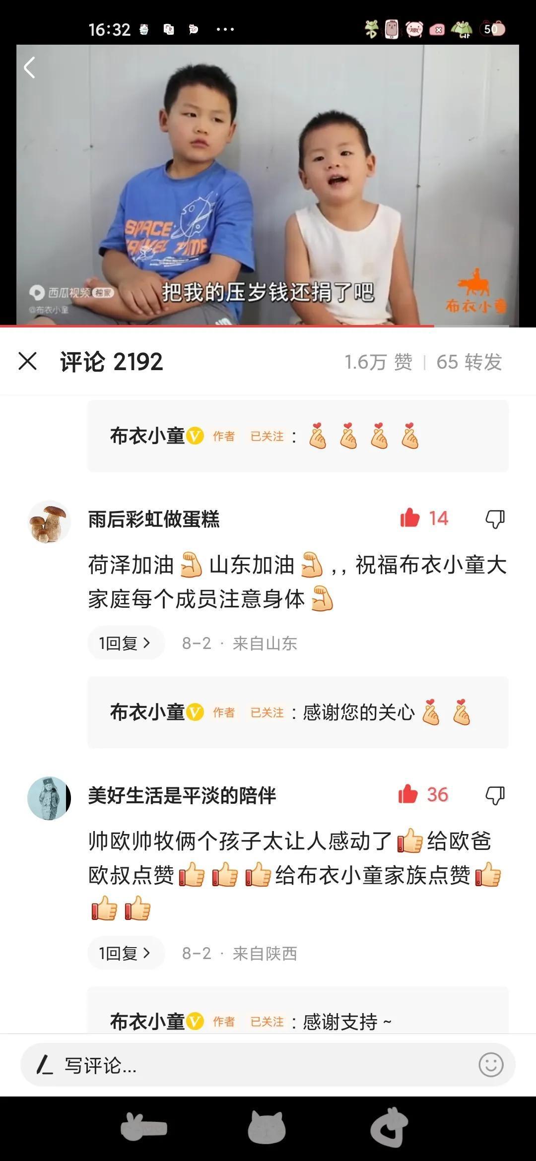 这是我第二次写布衣小童,因为我觉得像布衣小童这样正能量的自媒体,像这样善良朴实,温馨和谐的一家,小欧小牧这样聪明懂事的孩子,应该多多宣传,让更多人都知道,让更多人关注布衣小童!布衣小童棒棒哒![赞][赞][赞]