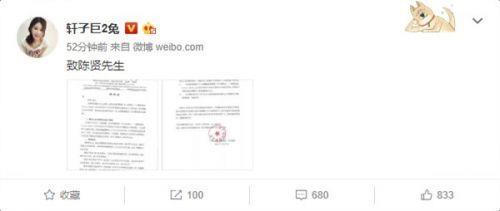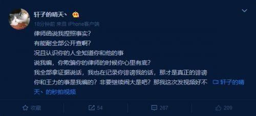 但此时,令人窒息的操作出现了,轩子巨2兔不仅没有追加表态,反而是删除了“致陈贤先生”这条微博和相关的律师函附件。不少人猜测王力和轩子之间已经除了分歧,因为从微博的文字风格上来看,有很大几率出自王力之手,而删除微博则可能是轩子本人的行为。