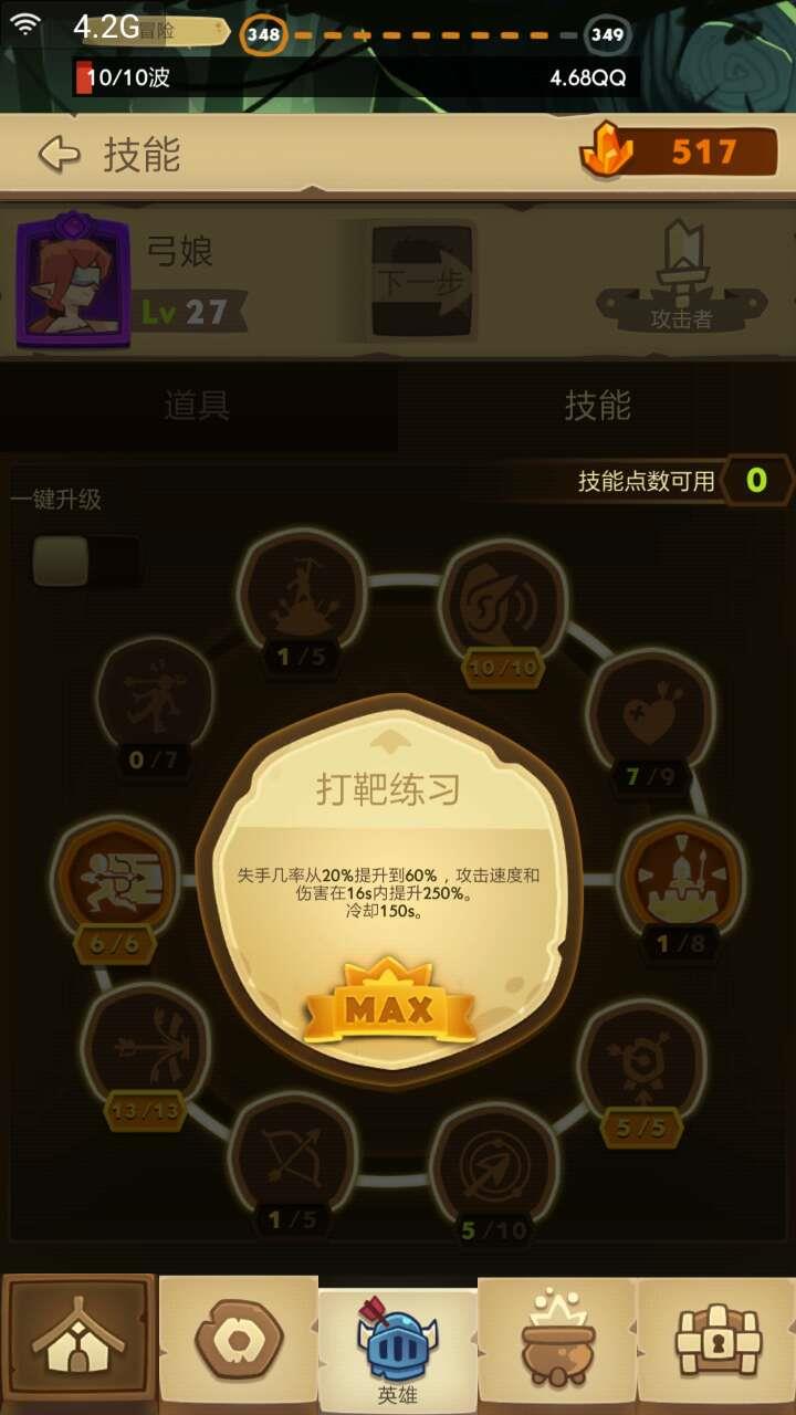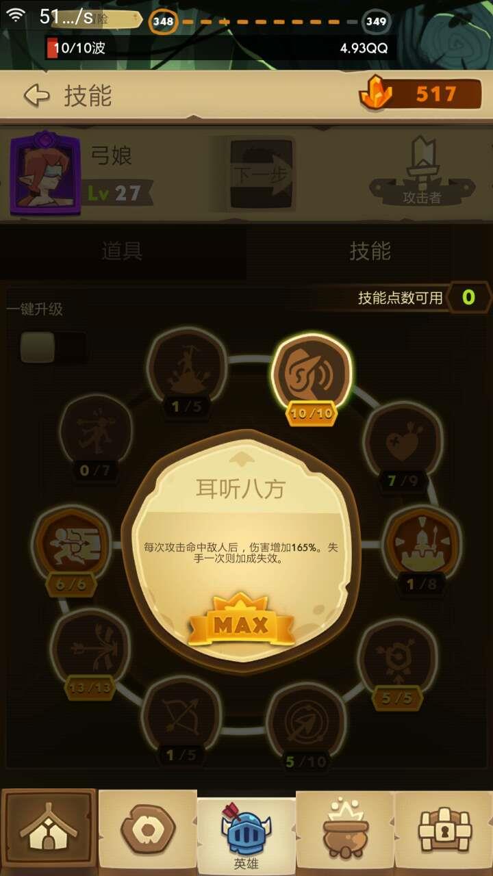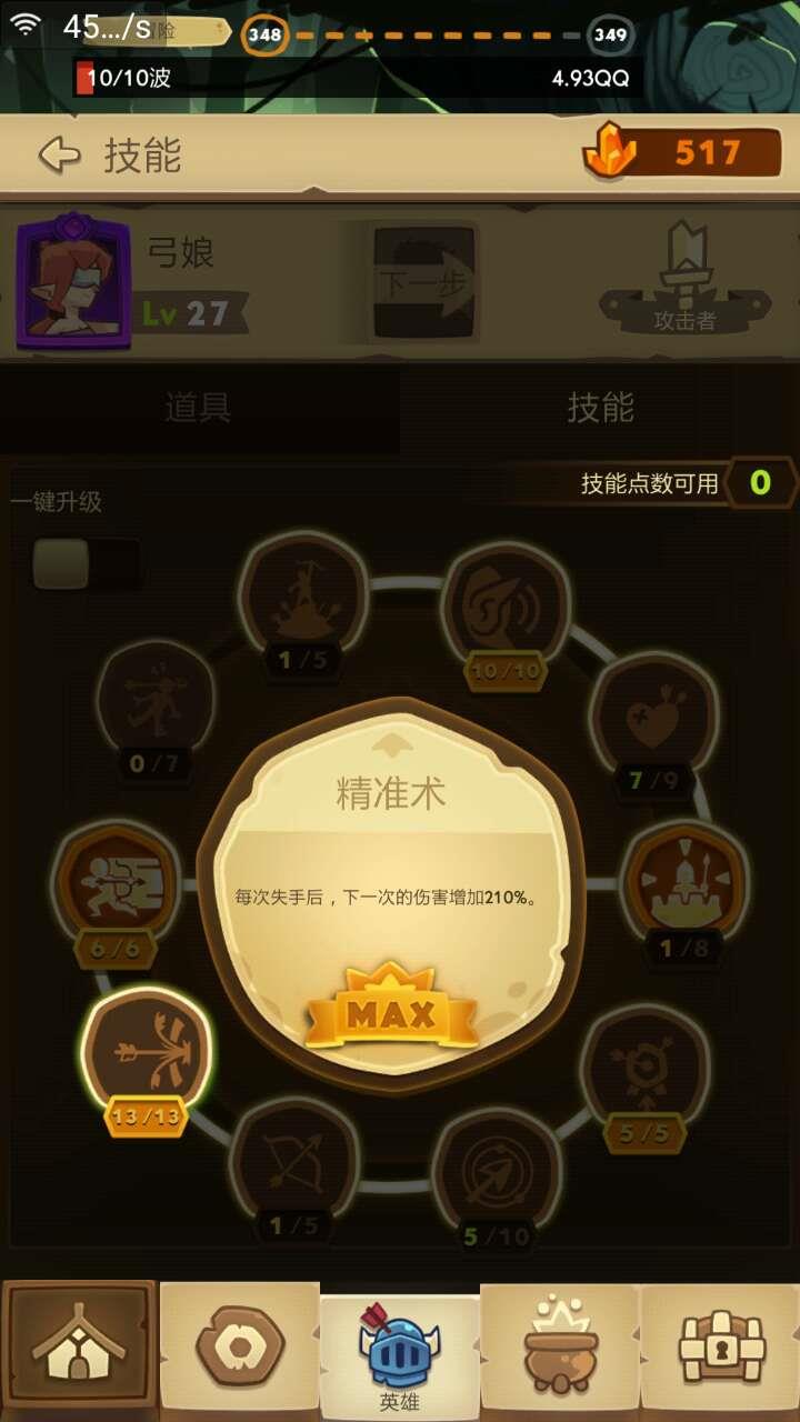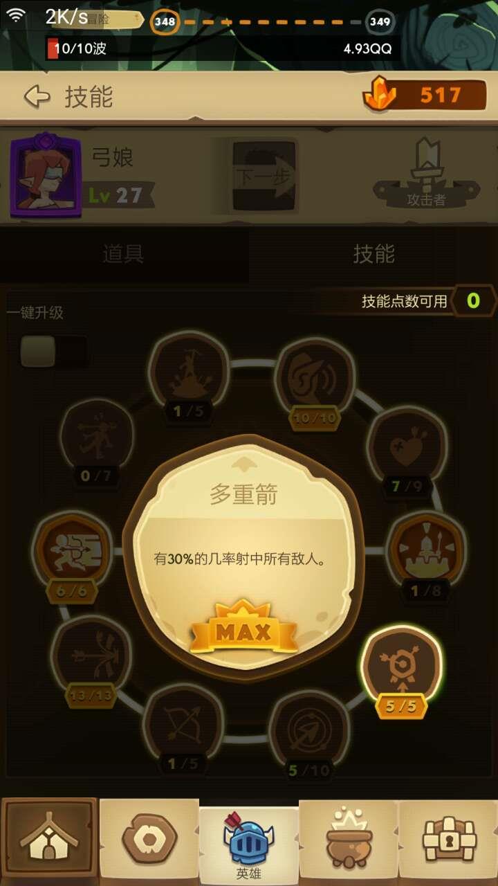 弓箭手第一个要点满的技能个人认为是多重箭,触发太变态了,本身就暴击高,基本都是秒来妙去的。