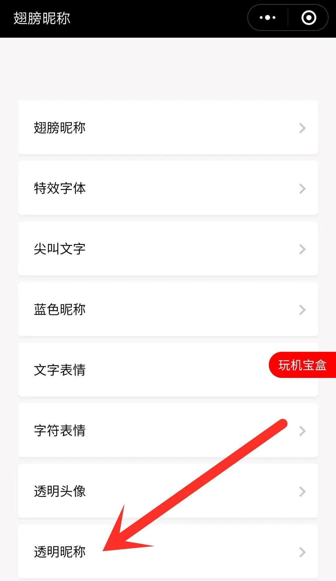 我们打开这个小工具之后,可以看到这里面有很多的功能,在最下面找到透明昵称选项,然后点进去。