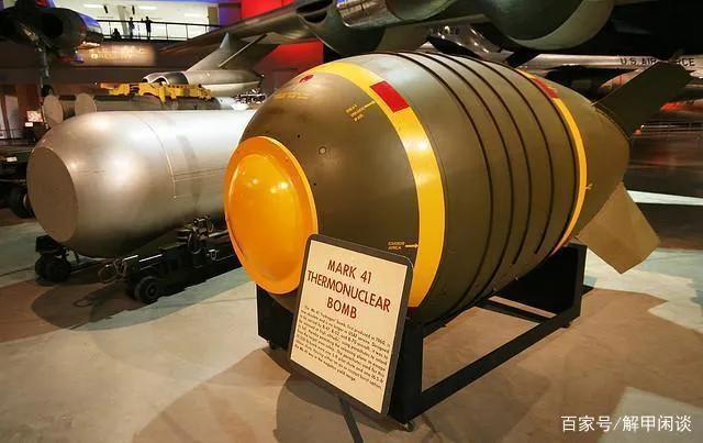 而在美国的热核炸弹中,威力最大的当属"Mk一41热核炸弹",该弹重4850千克,爆炸当量为2500万吨TNT。已退役。