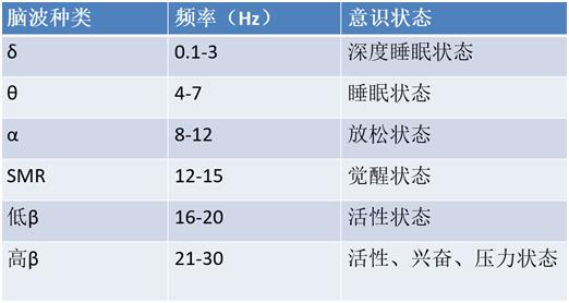 我们通常将脑波分为4种或6种波段,为了便于研究,我们采用6分法。