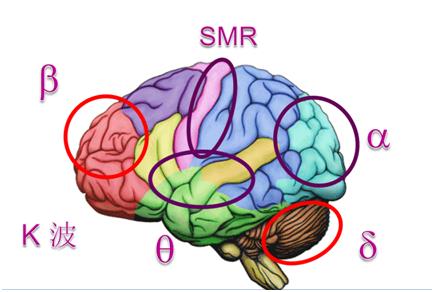 SMR波:频率12—15Hz, SMR波是大脑觉醒程度的尺度。SMR波是由位于美国旧金山的加利福尼亚州立大学的M.B. Sterman博士发现的。在大脑皮层中的感觉皮层和运动皮层发现的律动叫做SMR波。