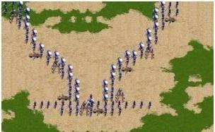 由此三种变化,长蛇阵运转,犹如巨蟒出击,攻击凌厉!两翼骑兵(古代机动能力强的兵种)的机动能力最为重要,所以要破除长蛇阵,最好的方法就是限制两翼机动能力,以使其首尾不能相顾。所以,最佳的方法就是:揪其首,夹其尾,斩其腰!详细方法就是在我方步兵阵群中设置陷阱,以两个步兵方阵协作阻止对手两翼骑兵运动,使其无法发挥其机动灵活的能力,再以强悍重骑兵为主对其蛇腹步兵发动强悍冲击,使其阵形散乱,无序!一举击溃步兵方阵,将长蛇阵切割成为三块,如此一来,长蛇阵各自为战,无法再以三方配合作战,阵势不攻自破!
