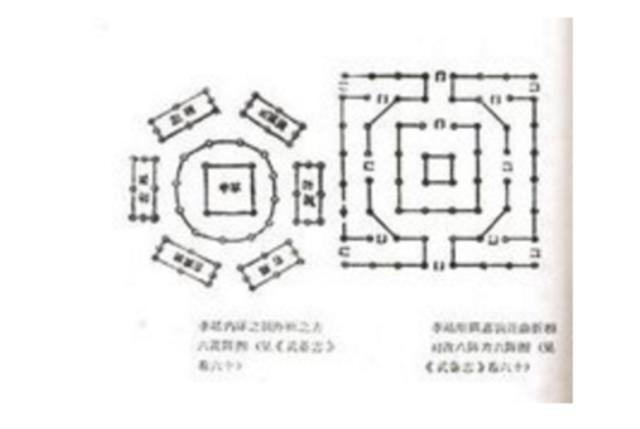 “八门金锁阵”是根据“奇门遁甲”中的八门方位、星象、地形等因素所制定用于古代战场上的战阵。是为了使占星术更方便而用的方位术“奇门遁甲”,诸葛亮根据“奇门遁甲”的使用方法进行改良,而编绘出的完整的“八阵图”。