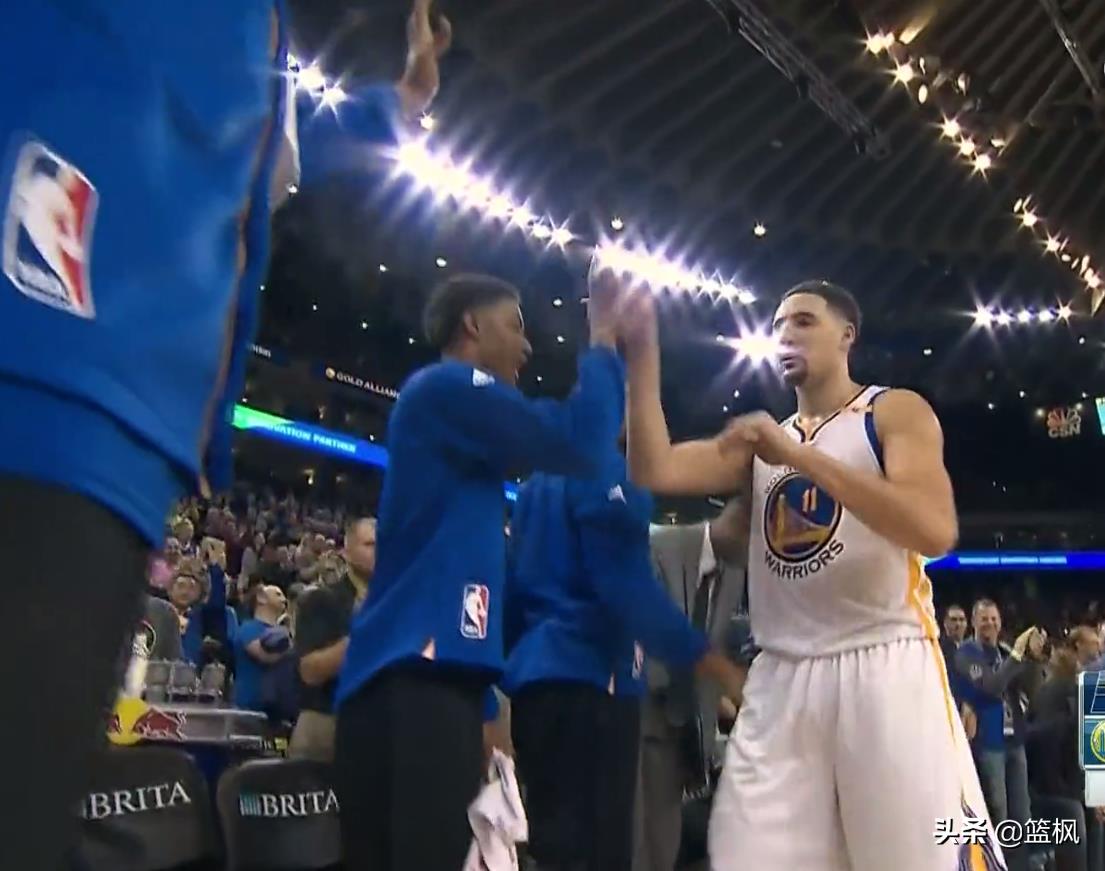 那场比赛库里和杜兰特沦为了陪衬。库里,杜兰特,格林,伊戈达拉,每个人都在不断的找寻汤普森的机会。可以说就是一个大型喂球现场。那场比赛体现了勇士队队内非常团结的气氛。再加上主场球迷的狂欢。让刚刚到来的杜兰特感到十分欣喜。或许当时他也感觉到自己加盟勇士队十分幸运吧。