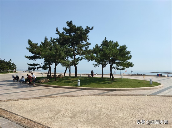 沿着广场石板路或海岸木栈道向北,一边是绿地松林,另一边是礁石海浪,这种景观是灯塔景区的特色之一。