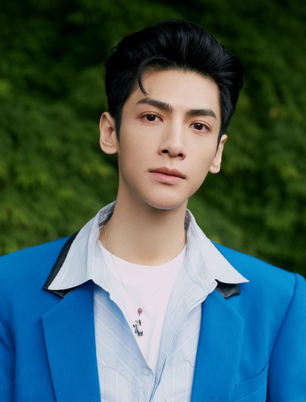 他演少年何以琛被人熟知,今穿条纹衬衫配蓝色西装,温柔冷俊