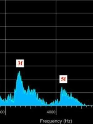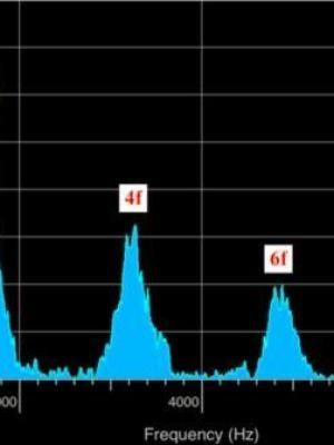 这时我们看到谐振尖峰中只有偶次倍频,笛子几个孔不一样大,没有奇次倍频。当然我们也可以定义F=2f,这样频谱上的这些2f,4f,6f,8f倍频的尖峰,就可以看成:1F,2F,3F,4F,也就是说,是F的整数倍频。