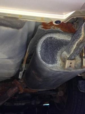 “你说的基本对,”爷爷说:“汽车的消音器是一个大铁桶,发动机的废气通过一根管道,进到铁桶里来。铁桶后面又焊了一根管道,让废气排到外边。发动机的噪声,就是被排气管道的这些进口和出口孔反射回去的。”