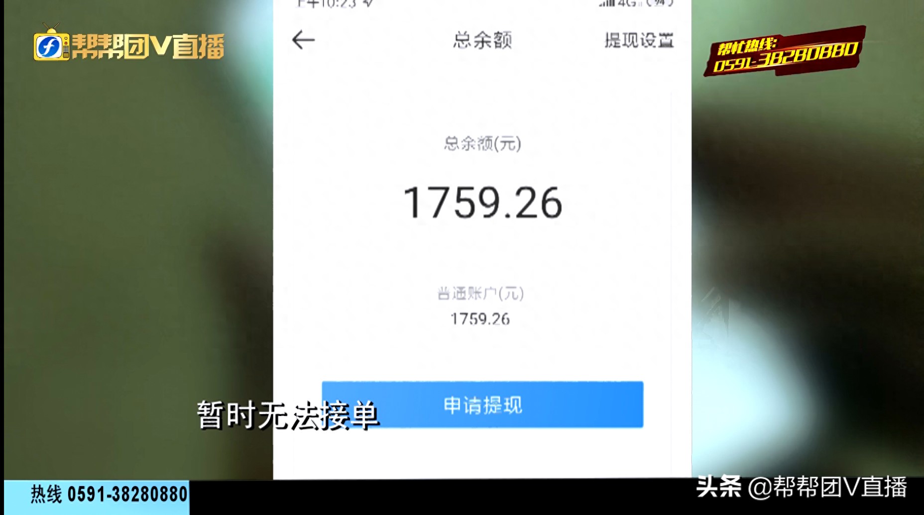 胡先生告诉帮忙记者,他是福州达达公司的一名外送员,已经工作两年多了,之前还一直正常配送外卖,突然有一天,他发现自己的账号被永久性拉黑,不仅无法接单,账户上的余额和押金也取不出。