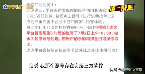 福州达达平台的一名配送员胡先生向帮帮团反映,他的账号突然被平台永久拉黑,原因是他使用了第三方平台的外挂软件抢单,可是胡先生表示自己压根不了解这些外挂软件,更别说使用抢单了,那么具体情况到底是什么样的?帮忙记者联系了胡先生。