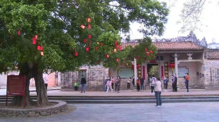在金林村丽先谈公祠门前的这棵古榕树,就是人称的许愿树。古树绿荫如盖,茂盛的树杆上挂满了红色的心愿祈福绸带,慕名前来的游客,诚心写下心愿向树许愿后便将其抛上树干。