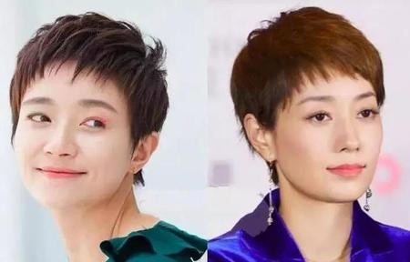 再看一下佟丽娅的两款短发对比,左边的超短发,完全不适合她,因为佟丽娅在我们的感觉里,她的气质还是比较偏女性化,女人味儿的,所以那种硬朗的超短发完全抹杀了她的气质