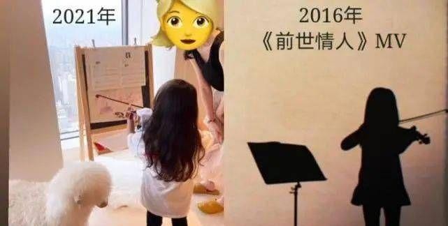 而且值得一提的是,这背影和周杰伦5年前的歌曲《前世情人》里的女儿的剪影一模一样,颇为感人。