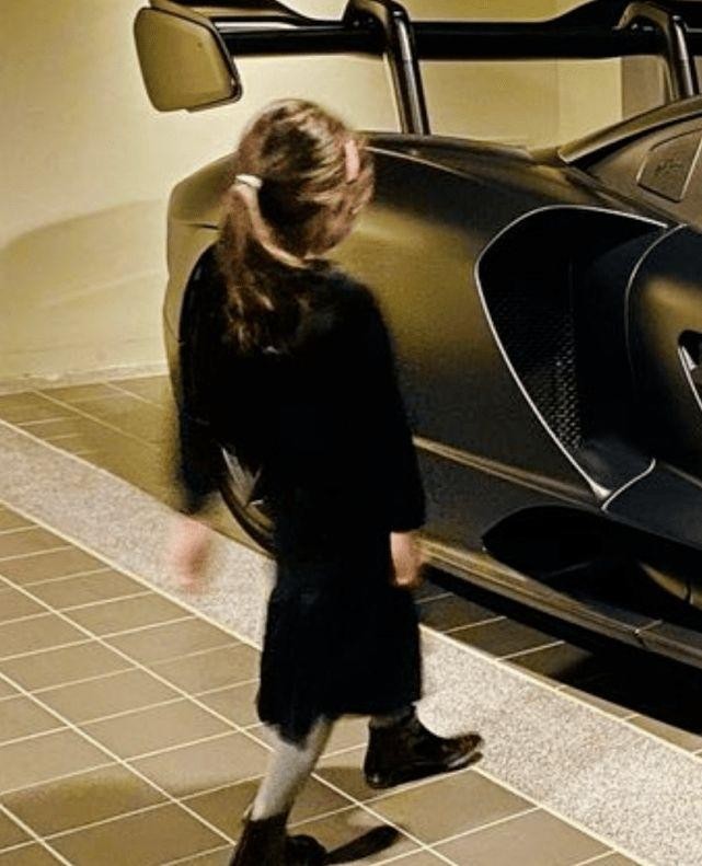 海瑟薇穿着一身黑色走向豪车,不过被周杰伦拍得有些古怪,动作和身材比例都有些奇怪。小周周扎着松散的马尾,棕色秀发略显凌乱,好在这些都不影响她的可爱。
