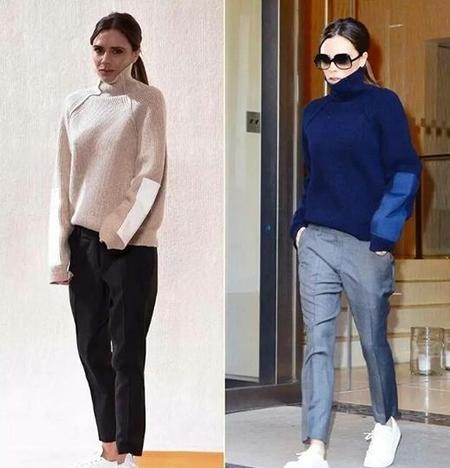 烟管裤与毛衣的搭配,让贝嫂是不是很慵懒却知性?