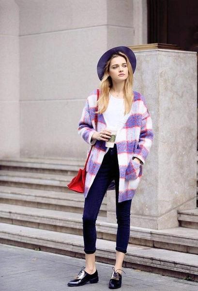 如果腿很修长的身材,让烟管裤卷成七分的长度,一双英伦风格的帅气鞋子,简单又舒服的白T恤,简直就是街头风格的必备品之一,加上格纹彩色的外套,减龄又好看。