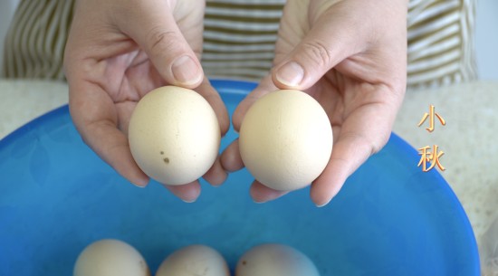 我们先准备20个鸡蛋,20个鹌鹑蛋,要选没有破损和裂纹儿的,像我这样把两个鸡蛋拿起来互相轻轻地敲几下,听着是清脆没有发闷的声音就是好鸡蛋,然后放到清水盆里洗干净。