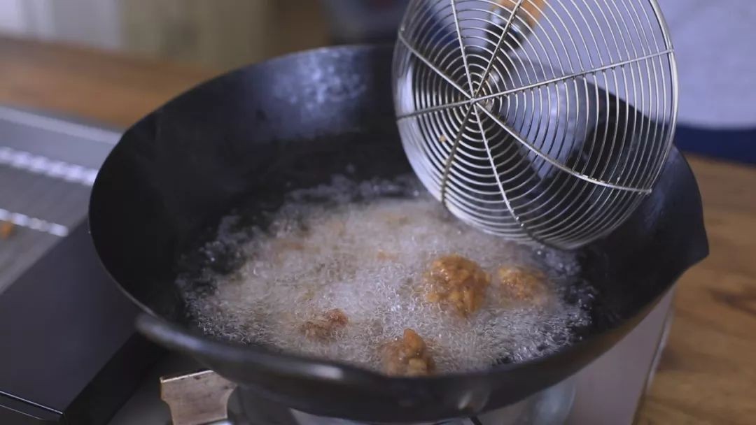油温加热到8-9成热的时候再放入排骨炸30秒捞出