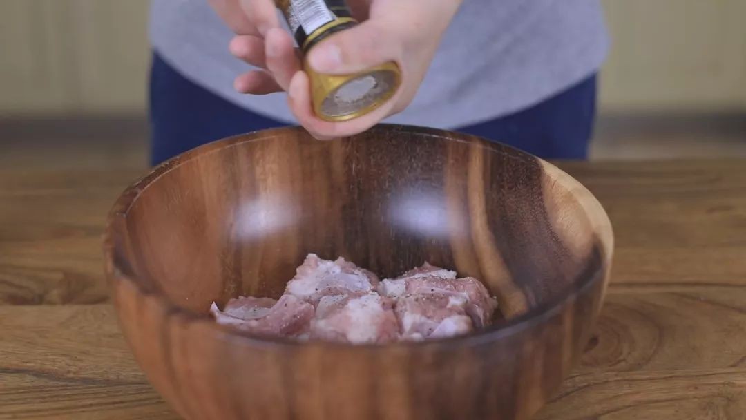 腌制,肉类的腌制离不开盐、黑胡椒、老抽、生抽、蚝油、小葱和生姜,这也是最基础的腌制配方,主要的目的就是调味、去腥和上色,大家可以在这个基础上,再根据自己的口味添加一些其他的香料;
