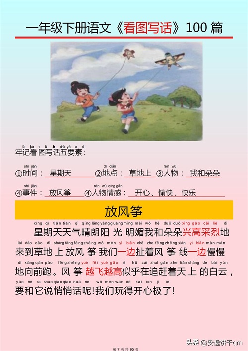 一年级看图写话范文100篇,建议同学们打印学习,提升写作水平