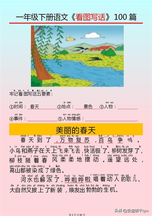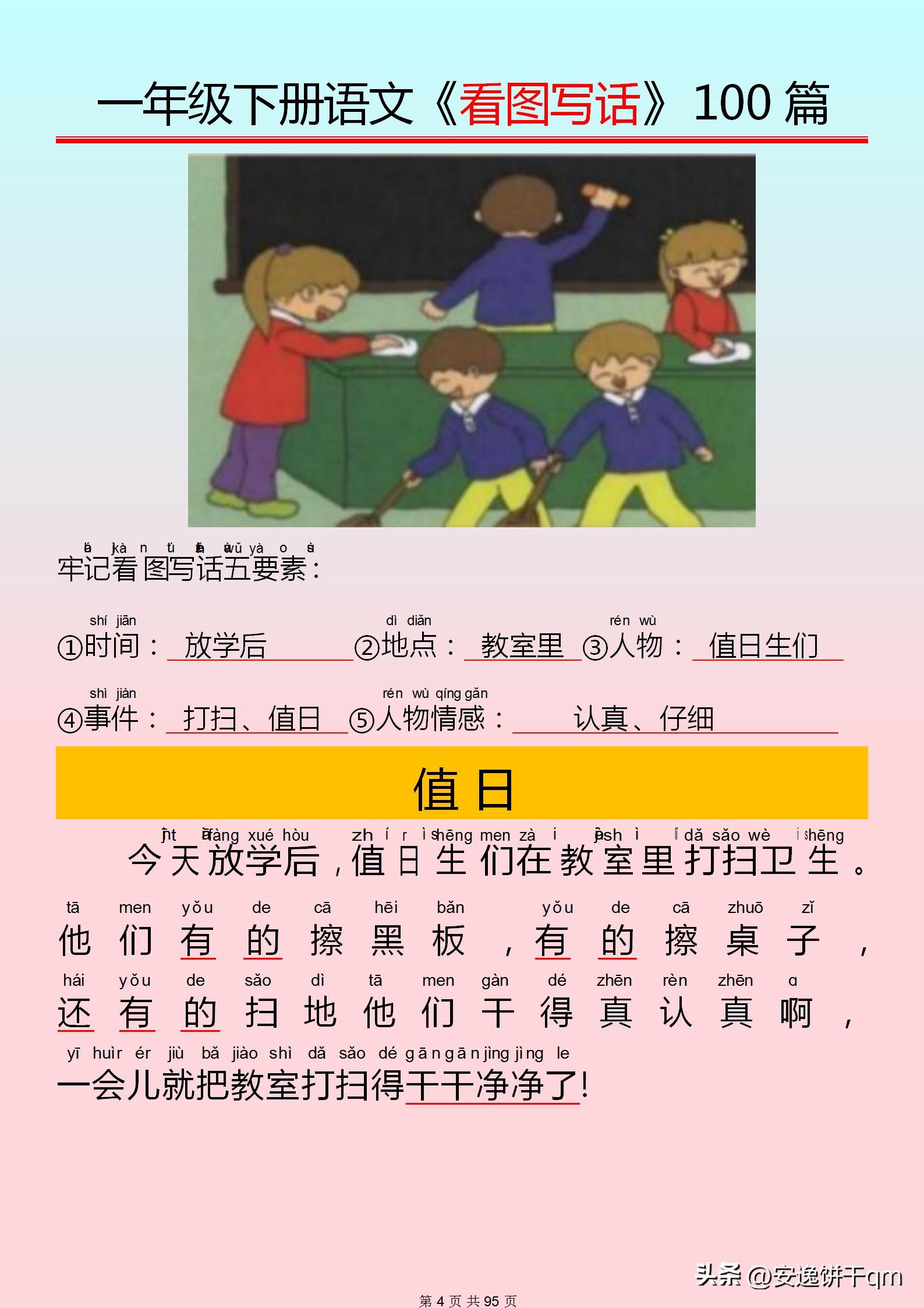 为了帮助同学们更好的提升看图写话的能力,老师专门为同学们准备了100篇看图写话的范文,家长在孩子放学回家后可以读给孩子听,让他们页试着去表述一下,从而取提升孩子的写作水平,需要打印的家长请拉到文章的结尾!