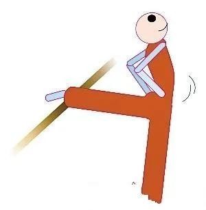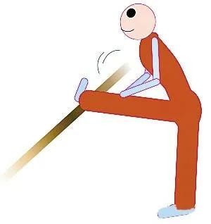 动作要点:两腿挺膝,支撑腿直立且全脚着地站稳;挺胸、展髋、腰后屈;后压振幅度逐渐加大。