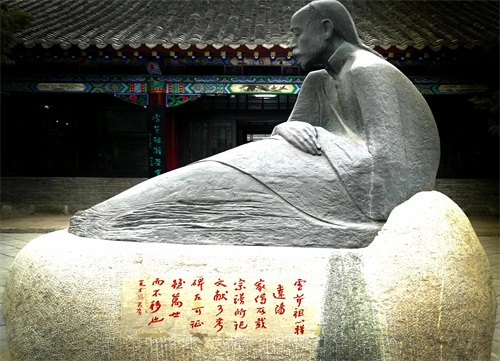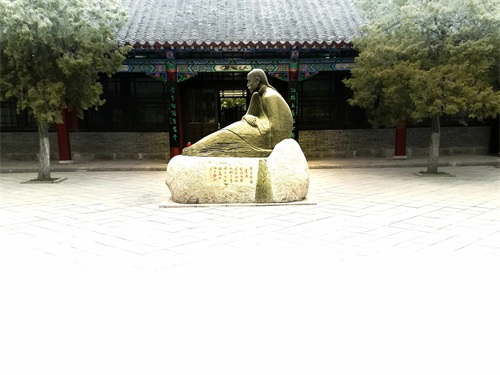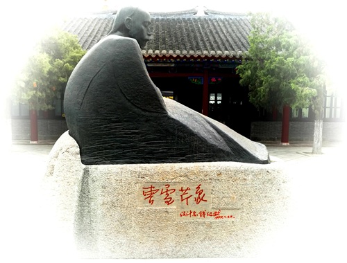 院中曹雪芹身着长袍坐态石像,十分醒目,仿佛《红搂梦》开篇言:“满纸荒唐言,一把辛酸泪。都云作者痴,谁解其中味”。