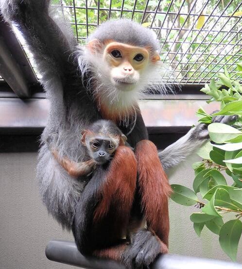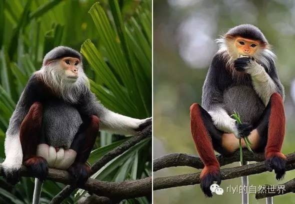 白臀叶猴:又名海南叶猴,黄面叶猴。因此种猴子臀部有一块白色印记,故而得名:白臀叶猴。1882年,中国境内白臀叶猴灭绝。
