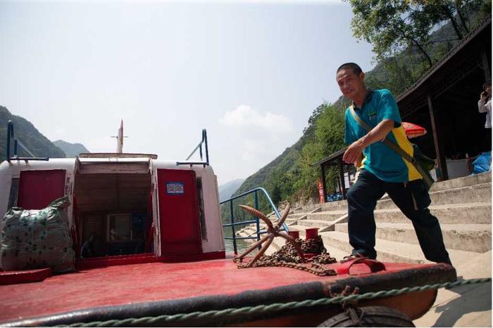 面对如此美景,谷城县邮政分公司盛康支局投递员宋先凯却无暇欣赏。他像往常一样开着车把要投递的包裹、报刊装车带到旅游码头,再倒换到游船上,溯流而上,沿岸投递。水面上翻滚着阵阵热浪,船舱里也不透气,坐在船舱里的宋先凯仍是满脸汗珠,“十几年间,这条邮路上的变化大着哩。”