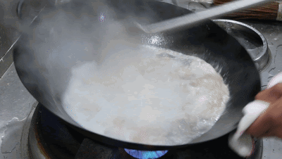 另起锅添入少许食用油,放入冰糖10克,用勺子轻轻敲碎,连续搅拌化开。