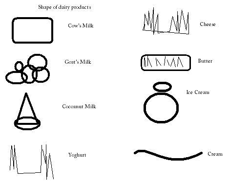 味道-形状联觉示例:乳制品的形状: 牛奶、羊奶、椰奶、酸奶、奶酪、黄油、冰淇淋和奶油。(来源:Susan Brice in the Gallery of the website sensequence.de)