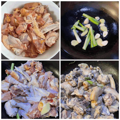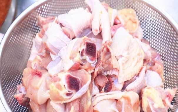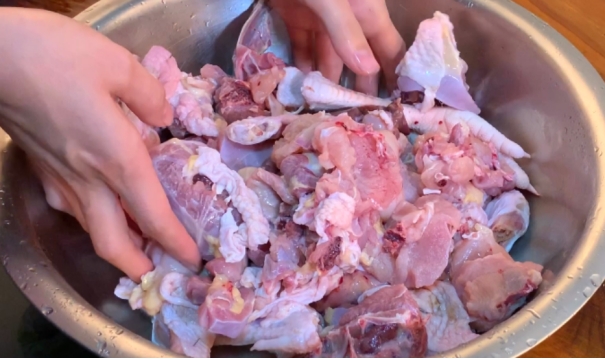 鸡肉剁好以后,不要立马倒进锅里,正确的做法是,多用