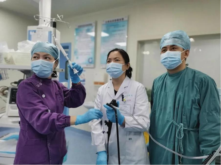 张惠兰(左二)进行纤维支气管镜操作