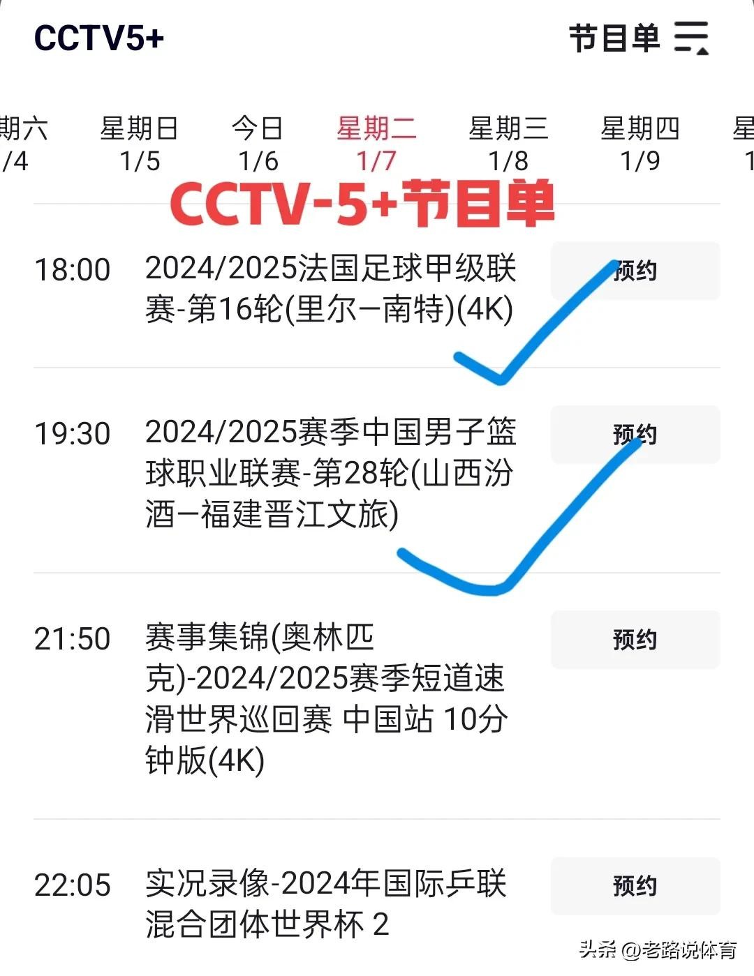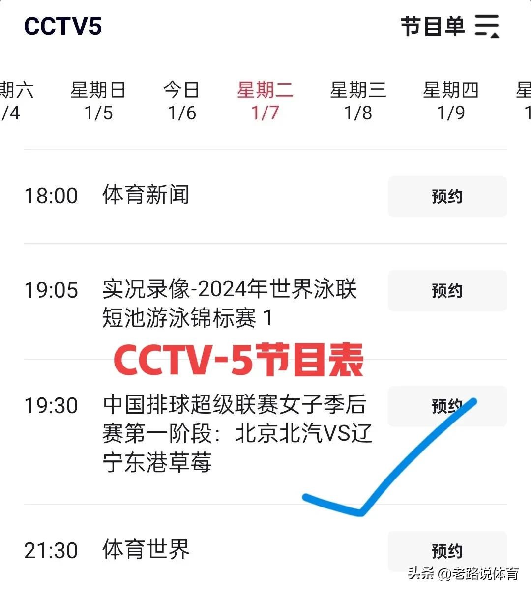 调整!1月7日中央5台直播节目时间表:CCTV5节目单 天津女排出战