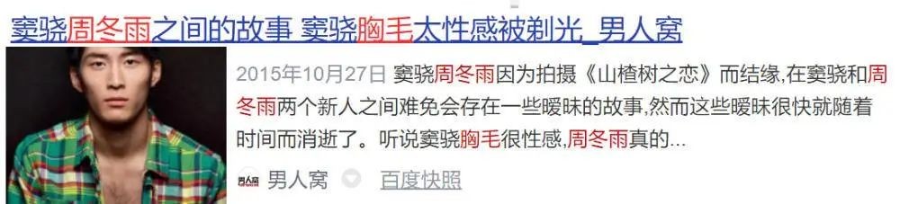 曾与周冬雨一起拍摄《山楂树之恋》的窦骁也是性感胸毛拥有者,只是拍摄时被“强行”剃掉了胸毛。